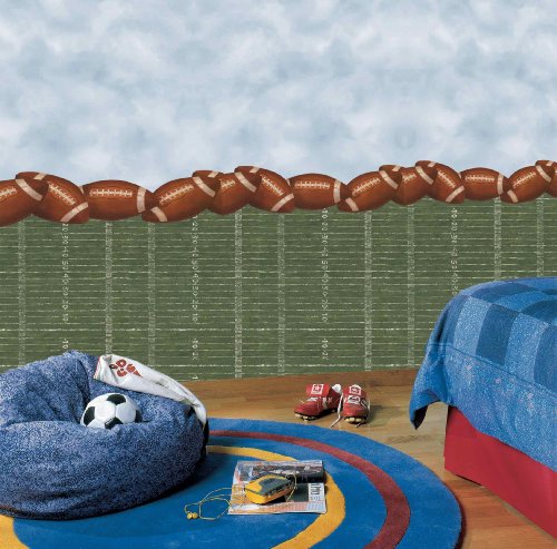 York Wallcoverings BT2892B Football Border, Saddle Brown/Linen White/Black Onyby