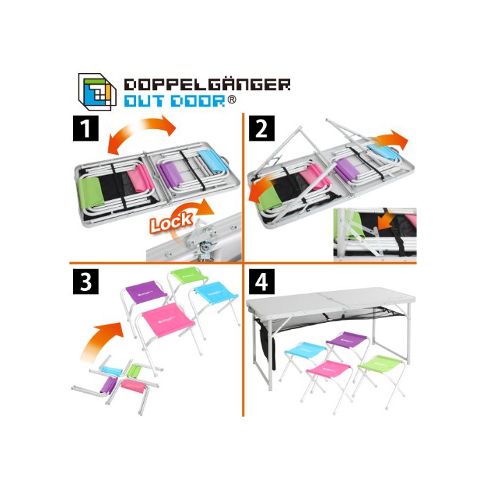DOPPELGANGER(DOPPEL GANGER) 접이식 해피 테이블 세트 TB5-111 【 체어 ×4 테이블 ×1세트 수납 넷 부착 파라솔 혈부속 / 콤팩트 수납 / 다