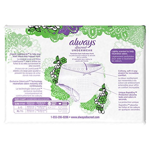 Always Discreet, Incontinence Underwear for Women, Low Rise, Moderate Absorbency, Small/Medium, 19 Count