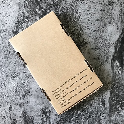 Dimensions: Tin 6.69x3.54 x0.6 inches (17x9x1.4cm); full pans : 1.18x0.78x0.4 inches (3x2x1cm); half pans: 0.78x0.67x0.39 inches(2x1.7x1cm)