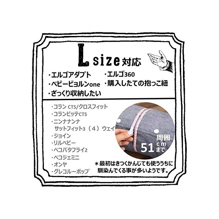 L사이즈는 에르고 adopt 에르고360 베이비비욘one 약간 큰 포옹 끈으로 쓸만합니다.듬성듬성 수납 하고 싶은 분이나 산지 얼마 안되는 포옹 끈에.