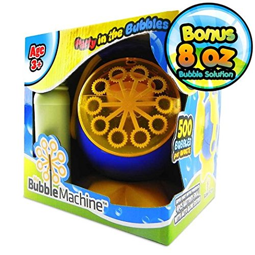 -. Feature : --- Bring Bubbly Fun to Your Parties! --- Enjoy endless fun of bubbles with My Bubble Machine(TM)! 500 bubbles are blown per minute and will not pop easily. Its quiet motor is powered by 4 x 5V C batteries and activated with a simple on/off switch. / --- Exclusive Handle and Removable Cover --- The ONE AND ONLY bubble machine with handle, that's us! It's lightweight and stable, so you can place it anywhere, even hang it on a tree branch! / --- Stunning Bright Colors --- With its bright blue and yellow color, My Bubble Machine(TM) will definitely lighten up your party! It will stand boldly with all the bubbles it produces and make your party so fun! / --- Premium Nontoxic ABS Material --- Made only with best quality ABS, My Bubble Machine(TM) is built to last! And more importantly, it is nontoxic so it is safe to be touched by your children. / --- Essential Party Pack --- 8.5oz Solution Included! Be it for children or adults, everybody will love this amazing bubble machine. ORDER NOW and complete your party with bubble tornado! [TAGS: bubble machine, children, automatic, battery powered, party bubble, bubble machine for party]