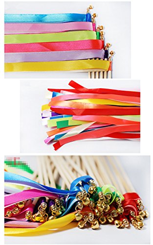 -. Title : COMING Pack of 30 Mix Color Chromatic Silk Ribbon with Bells Fairy Stick Wish Wands for Wedding ,Party,Activities