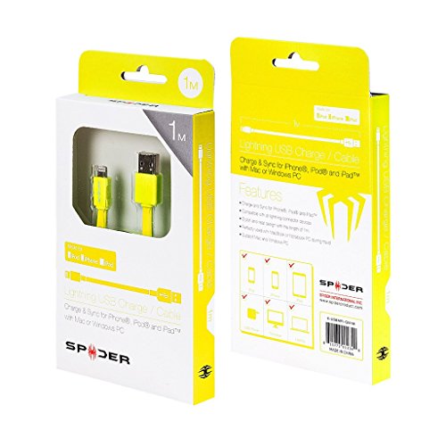 Spider USB to Lightinng Charger Cable Sync for iPhone, iPod, iPad 1M(Flat Cable) Yellow
