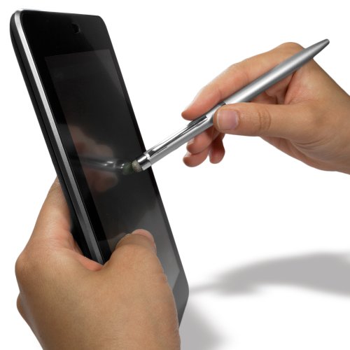 BoxWave EverTouch Meritus Capacitive Stylus - FiberMesh Tip Universal Stylus with Built-In Ballpoint Pen for the Amazon Kindle Fire, Fire HD 6, HD 7, HDX 8.9, Paperwhite, and Voyage (Metallic Silver)