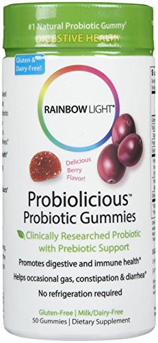 -. Binding : Health and Beauty -. Brand : Rainbow Light -. EAN : 5056018903555 -. Feature : Probiolicious makes it easy to support a healthy digestive and immune system / Rainbow Light -. IsAdultProduct : 0 -. Label : Rainbow Light -. LegalDisclaimer : Actual product packaging and materials may contain more and different information than what is shown on our website. We recommend that you do not rely solely on the information presented and that you always read labels, warnings, and directions before using or consuming a product. Please see our full disclaimer below. -. Manufacturer : Rainbow Light -. Model : ARL-154 -. MPN : 12121 -. NumberOfItems : 1 -. PackageQuantity : 1 -. PartNumber : 12121 -. ProductGroup : Health and Beauty -. ProductTypeName : HEALTH_PERSONAL_CARE -. Publisher : Rainbow Light -. Size : 50 -. Studio : Rainbow Light -. Title : Rainbow Light Probiolicious Gummies-50 ct -. UPC : 747725262237