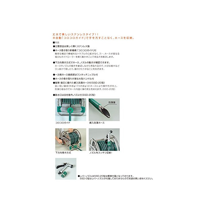 원본상품명: ハタヤ ステンレスホスリル 20m防藻ホス、レバノズル付 SSD20