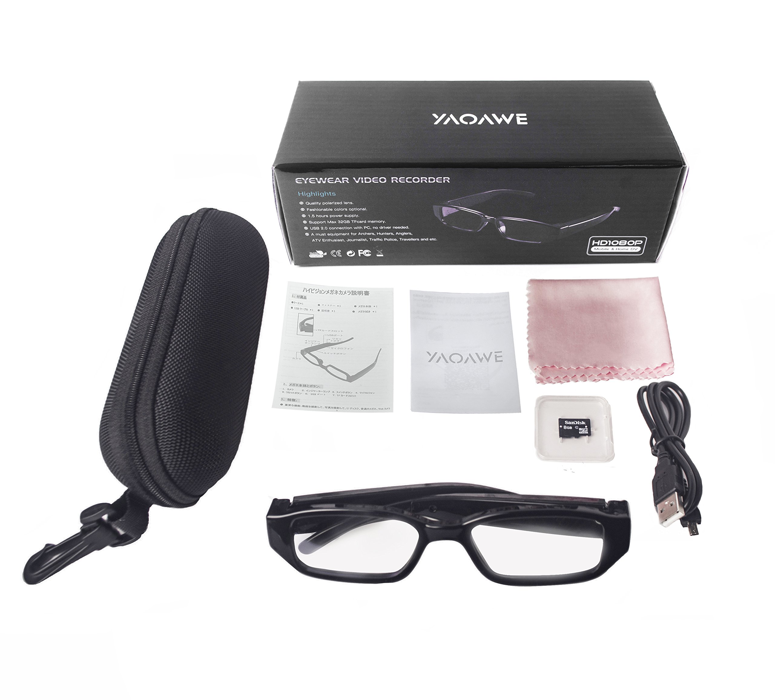 Eyeglass-type concealed camera microphone HD 1080P pinhole-less compact spy camera dedicated conference room