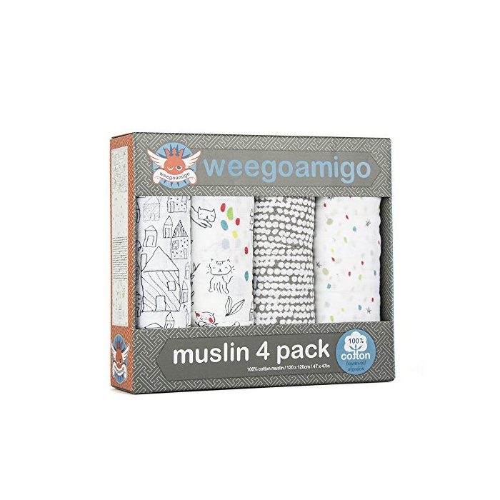 위 고어 me《고》 weegoamigo 아기의 포대기 4 Pack Muslin WGA4PM