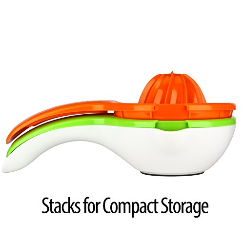 INCREASED LEVERAGE - ERGONOMIC HANDLE & NON-SLIP BASE: Unlike the competition, the Tango Juicer comes with an ergonomic handle that allows you to use both hands for increased leverage while the non-slip base grips the surface preventing the juicer from slipping and sliding, making table-top juicing a breeze.