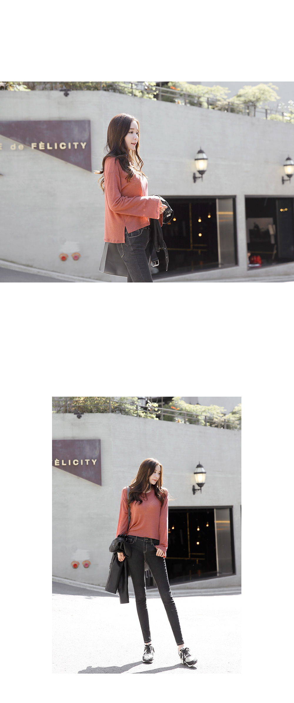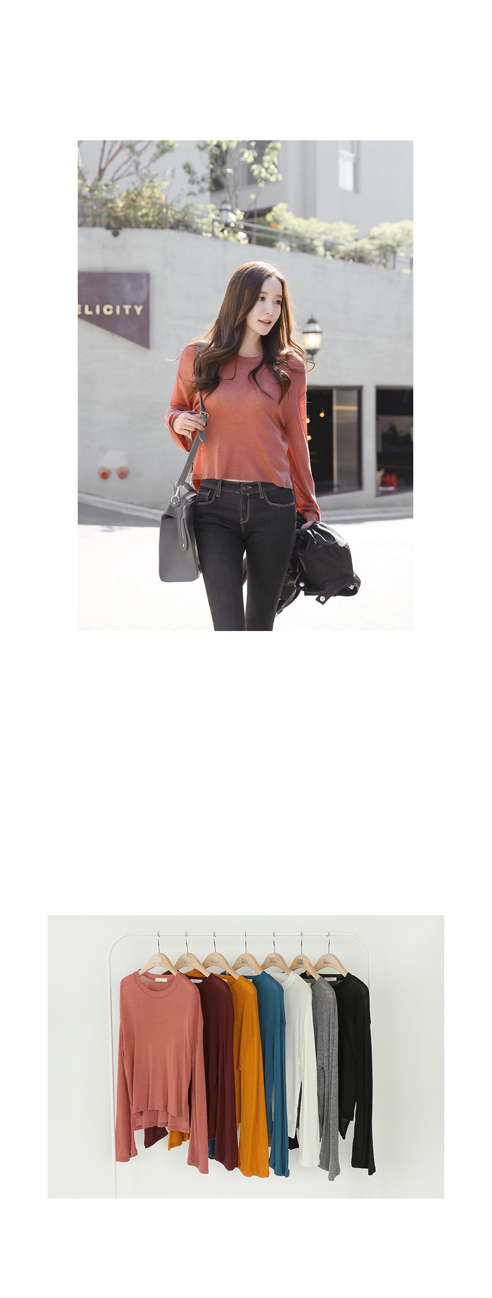 고급진 울소재 함유의 심플탑!어디에나 매치하기 좋은 코디아이템이죠울 혼방의 소재감이 고급스럽구요,쫀쫀한 신축성으로 착용감이 편안해데일리하게 손이가는 라운드탑이에요~은은한 비침의 시스루 디자인으로은근한 섹시미를 더해주구요,언발란스한 길이와 소매의 트임이트렌디한 느낌까지 연출해준답니다!시즌리스하게 활용하기 좋아레이어드용으로도 실용도가 높답니다^^