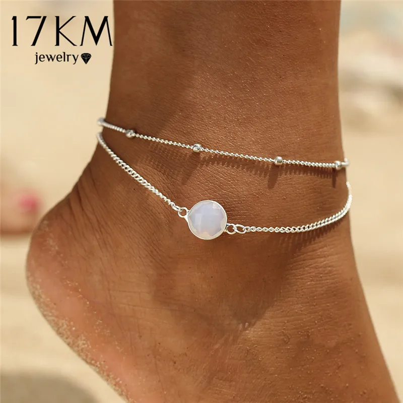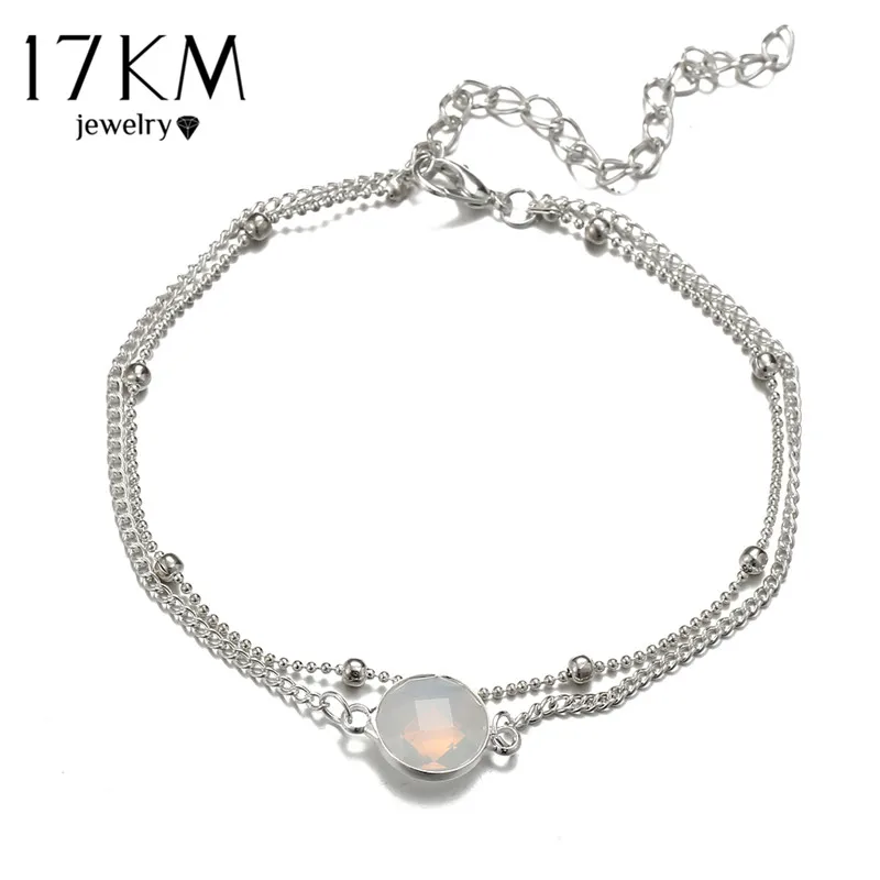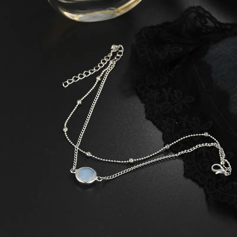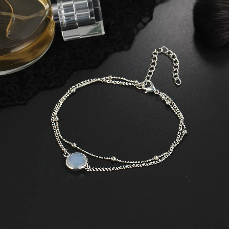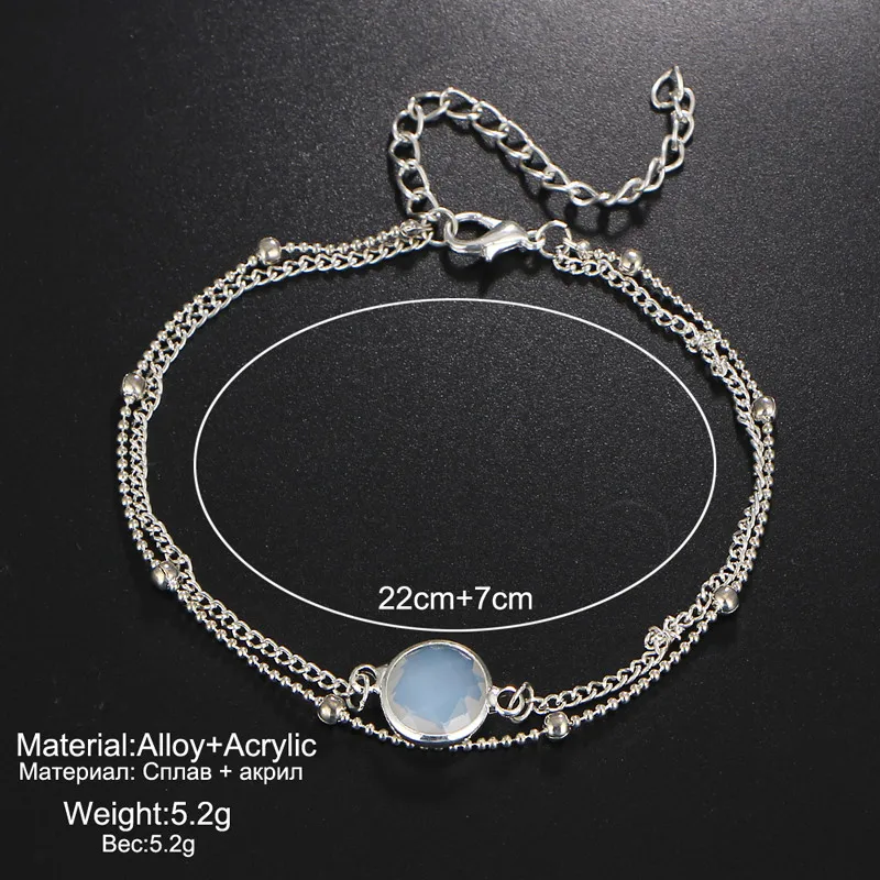 Design:Opal Anklet Multi Layer Anklets Silver Color Anklet