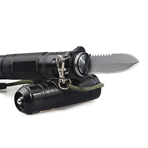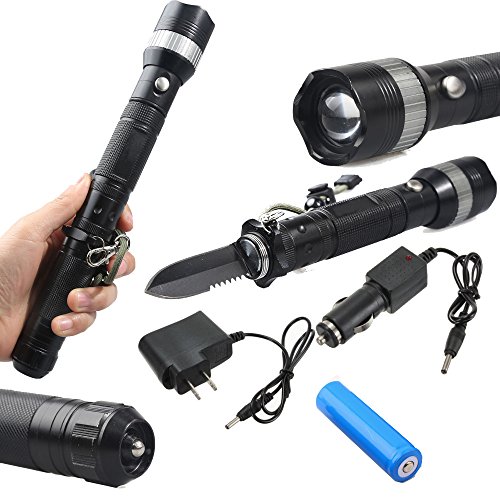 ledsniperBrightest Tactical Flashlight Torch ,Multifunctional Self Defense Survival Knife, Adjustable Focus Zoomable, CREE Q5 LED, 3 Modes, 500 Lumens,Outdoor Sport come with wall&car charger