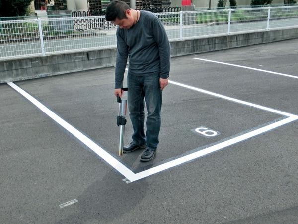 | 専用のシートを設置後、バーナー(別売)で加熱し溶着させるタイプの路面標示材です。アスファルト道路のライン引き(補修)、駐車場などの駐車スペースの区画ライン引きなどに。 |