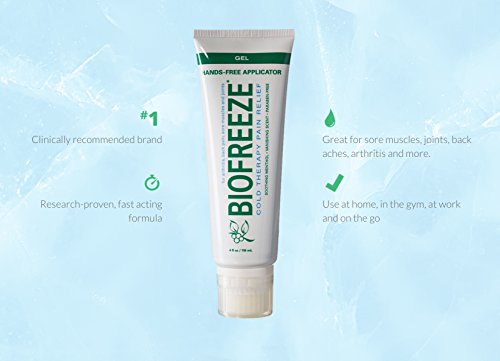 - The 4 Ounce Gel Tube with hands-free delicate sponge applicator is perfect for even application of Biofreeze on sore joints and bony areas, like knuckles, elbows, and knees