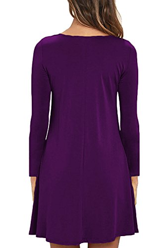 Women Dress Style - Dress with Hidden Side Seam Pockets / Solid Color / Scoop Neck / Long Sleeve / Casual Dress / Swing Dress / Mini Dress / T shirt Dress / Flowy dress / Stretchy and Lightweight
