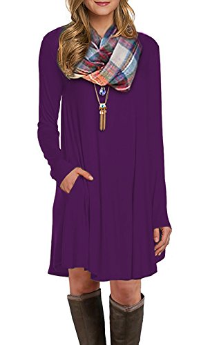 "VERABENDI Women's Long Sleeve Casual Loose T-shirt Swing Pocket Dress