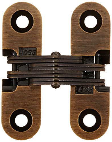SOSS 203 Zinc Invisible Hinge with Holes for Wood or Metal Applications, Mortise Mounting, Antique Brass Exterior Finish (Pack of 2)