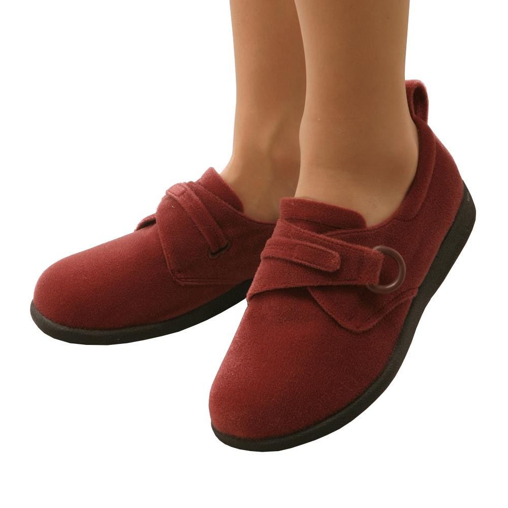 | 指周り部分は指が自由に動かせるように上下左右にゆとりの設計、甲周りはフィット感と履き易さを兼ね備えたダブルベルトを採用。もちろん、つまづき防止やかかと着地安定性の設計も忘れてません。「すごくラク!!」という感動を味わってみませんか? |