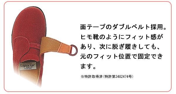 指周り部分は指が自由に動かせるように上下左右にゆとりの設計、甲周りはフィット感と履き易さを兼ね備えたダブルベルトを採用。もちろん、つまづき防止やかかと着地安定性の設計も忘れてません。「すごくラク!!」という感動を味わってみませんか? |