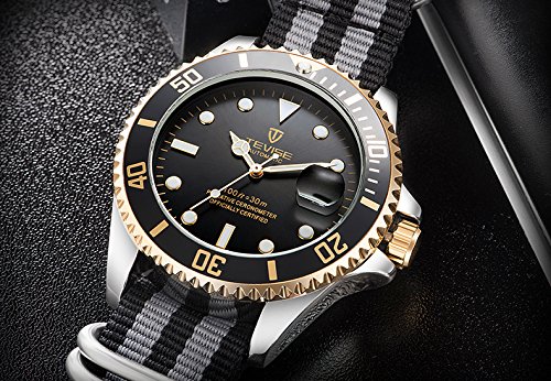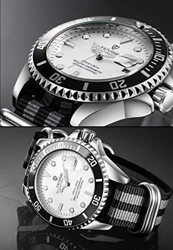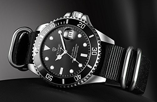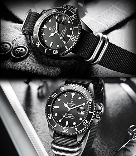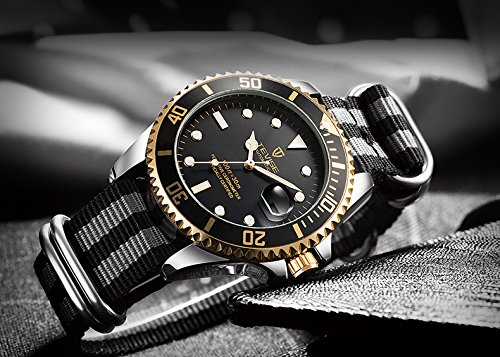 [고후오스]GOHUOS 멋쟁이 끈 벨트 손목시계 맨즈 아날로그 워치 비지니스 캘린더 자동 감기 (블랙 2)