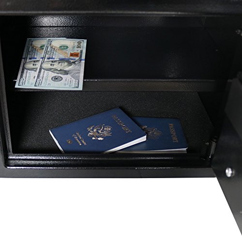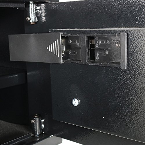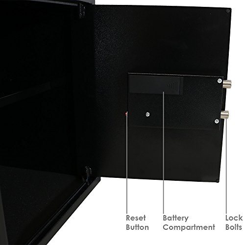 -. Feature : Size options available. / Features 2mm thick steel sidewalls, and 4mm thick steel door with mounting holes that allow you to mount to a floor or wall. The newly designed solenoid mechanism that engages and disengages the lock gives you the peace of mind knowing you have the highest level of protection against theft. / Includes 1 safe with programmable electronic lock, 4 AA batteries, 2 emergency override keys and steel bolt-down hardware kit so you can safely lock your items away with a personalized combination. You can use rechargeable batteries to operate the safe. / Live-locking bolts prevent unwanted access and entry. Please do not store your key inside the safe, so you can get into the safe should the batteries die. Safe is drill-resistant, tamper-proof, rust-proof and impact-resistant, so you can be sure your valuables are safe. Please note, the safe is not fire-proof or humidity controlled. / Sunnydaze Decor backs its products with a 1-year manufacturer's warranty for worry-free purchasing.
