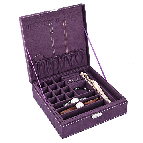 -. Feature : High-quality Material- Made of medium density fiberboard and covered with soft lint, solid and reliable, well protects your jewelry. / Considerate Design- Double-deck and detachable design, provide more space for you. / Easy to Open- Extremely convenient to open and close the box. also, with safety lock, quite ensures your items' safety. / Large Capacity- Capable to hold rings, earrings, brackets, necklaces, stents and so on. / Must-have Item- Be an excellent gift for most female friends.