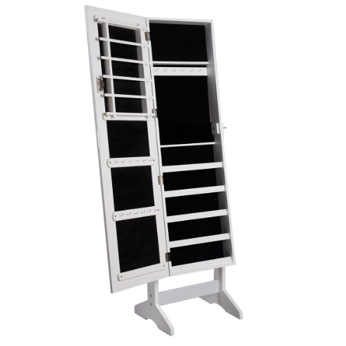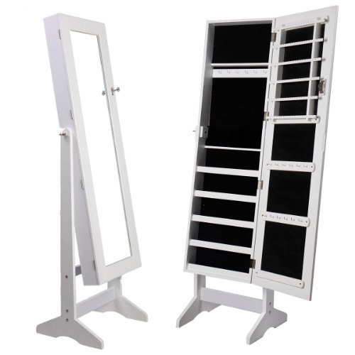 -. Title : Mirrored Jewelry Cabinet Amoire Black W/stand Mirror Organizer Storage Box Rings
