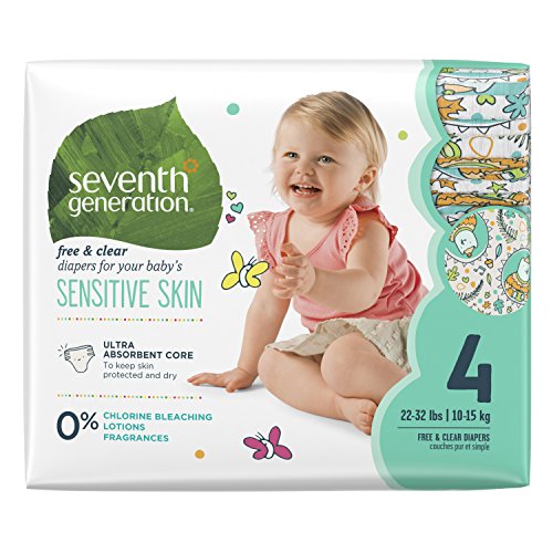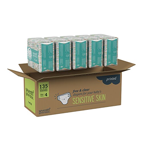 Seventh Generation Baby Diapers, Free and Clear for Sensitive Skin, with Animal Prints, Size 4, 135 Count (Packaging May Vary)