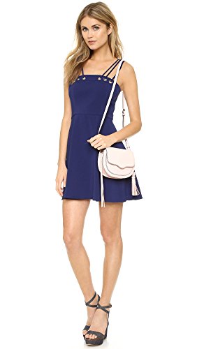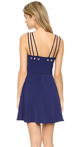 A circle skirt brings playful swing to this Amanda Uprichard mini dress. Grommets join the triple spaghetti straps. Hidden back zip. Lined bodice.