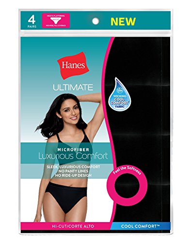 -. Binding : Apparel -. Brand : Hanes -. Department : womens -. Feature : High and flattering hi-cut leg with full coverage back. / No ride up leg bands. / Leg and waistband wont pinch or bind and look seamless under clothes. / Tag-free for itch-free comfort. / Available in a convenient 4-pack. -. Model : HXMFHC -. NumberOfItems : 4 -. PackageQuantity : 1 -. ProductGroup : Apparel -. ProductTypeName : UNDERWEAR -. Title : Hanes Womens Ultimate Cool Comfort 4-Pack Hi-Cut Panties