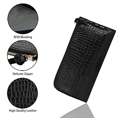 Why choose this Crocodile Leather Wallet? - Premium Quality Material: Made from high quality top grain leather to be noble and durable, do not tear or scratch easily, safe for long term use. Can be cleaned by wet wipes or towel, looks like new after long time. - Multiple Slots: The wallet has 2 slip pockets and 12 card slots. Enough space for you to put in your cash, cards and bills. Keep your money safely in this portable wallet. - Protect Your Privacy: Our wallets are equipped with advanced RFID SECURE Technology, a unique metal composite, which blocks RFID signals and protects the valuable information stored on RFID chips from unauthorized scans. - Attractive Design: Small and lightweight, simple but delicate, portable design makes it very easy for you to hold it, organize your cash or coins well.