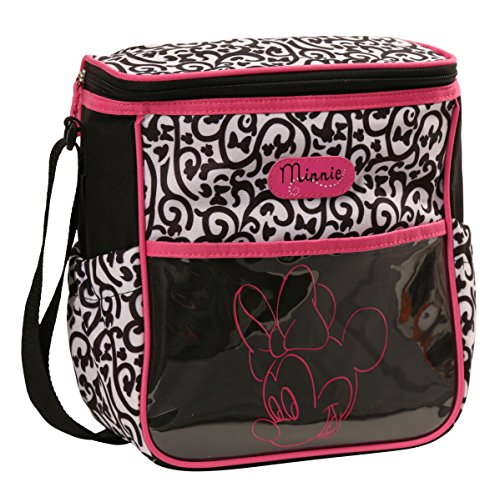 This Diaper bag has an eye catching design and is extremely functional for toting your baby's essentials around. By storing baby's bottles in the interior, or side bottle pockets, you'll never have to worry your baby's bottle spilling or making a mess. Adjustable strap for easy wearing. The world's most iconic characters, Disney's Minnie Mouse, is highlighted on this fashionable and functional diaper bag. Kids and adults love these timeless characters that are always on trend. Everyone relates to an always stylish Minnie Mouse.Feature
