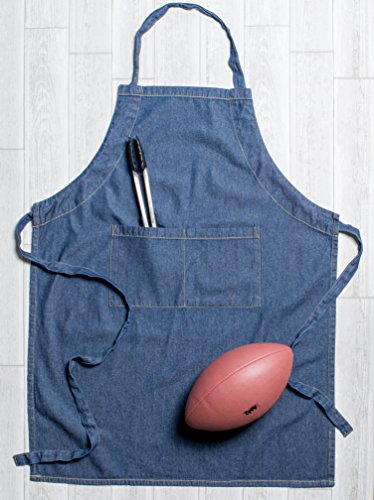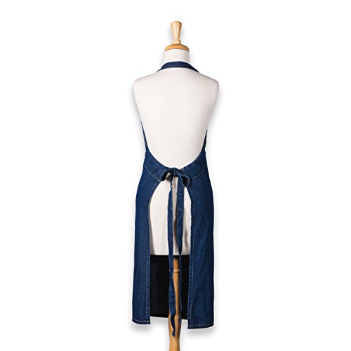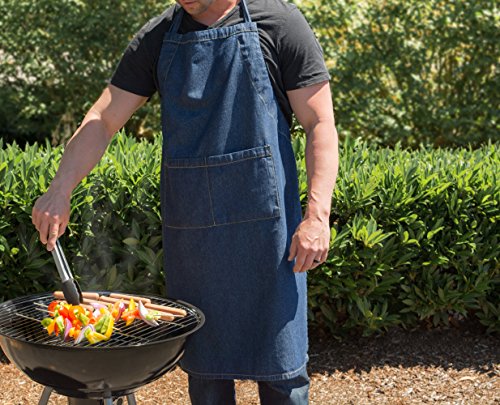 DII 100% Cotton Denim Jean Shop Apron with Pocket, 32x28" with Adjustable Neck & Extra-Long Waist Ties, Durable & Comfortable, Perfect for DIY Project, Crafting, Cooking, Baking, BBQ