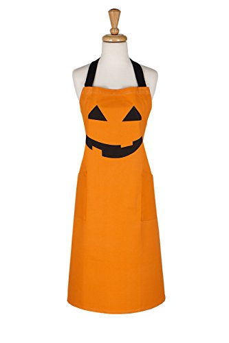DII Cotton Halloween Chef Apron, 28x35", with Pocket and Extra Long Ties, Men & Women Kitchen Apron for Cooking, Baking-Jack O' Lantern