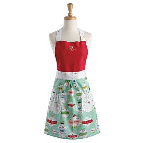 DII Cotton Chistmas Women Apron Dress with Pocket and Extra Long Ties, 20x29", Kitchen Apron for Cooking, Baking, Crafting, Perfect Holiday Gifts-Holiday Ornaments