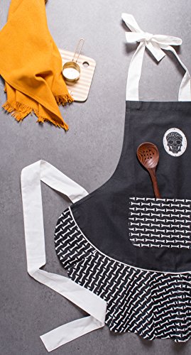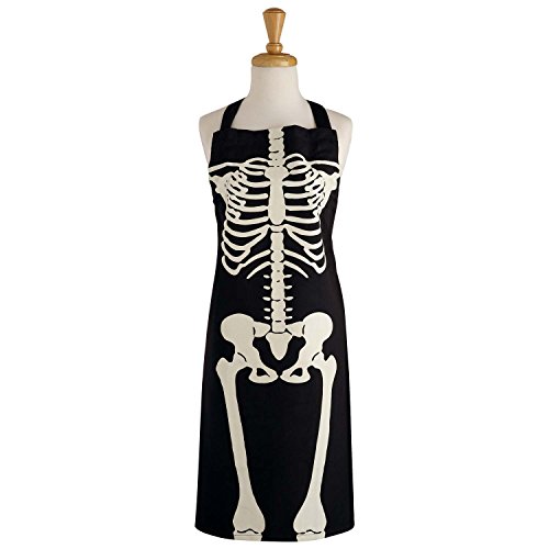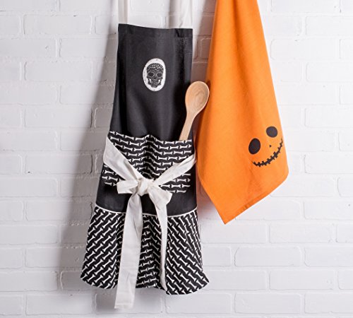 DII Cotton Halloween Holiday Apron 28x35" and Dish Towels 18x28" Kitchen Gift Set-Skeleton