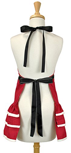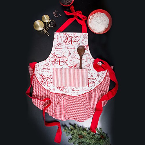 DII Cotton Chistmas Kitchen Apron with Pocket and Extra Long Ties, 28.5 x 26", Cute Women Ruffle Apron for Holidays, Hostee and Housewarming Gift- Vintage Christmas