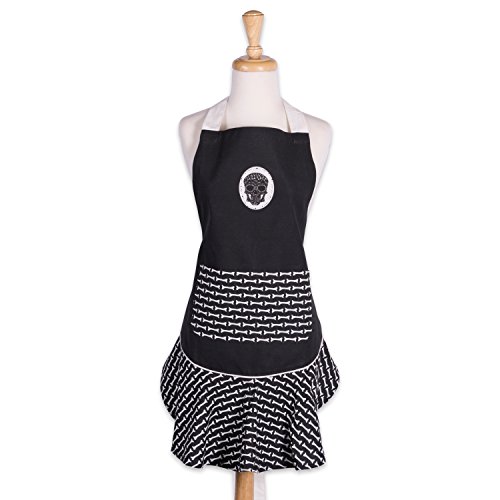 DII Cotton Halloween Kitchen Apron with Pocket and Extra Long Ties, 28.5 x 26", Fashion Women Ruffle Apron for Holidays, Hostee and Housewarming Gift-Dias De Los Muertos