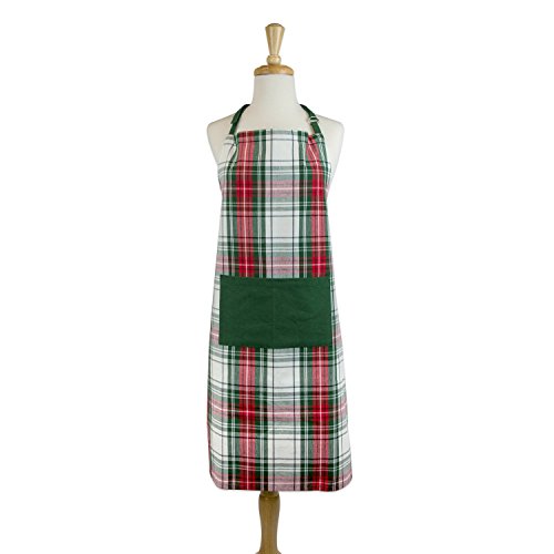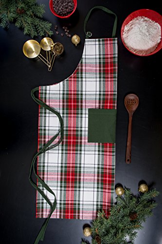 DII Cotton Chistmas Kitchen Apron with Pocket and Extra Long Ties, 32 x 28", Men and Women Chef Apron for Holidays, Hostee and Housewarming Gift-Christmas Plaid