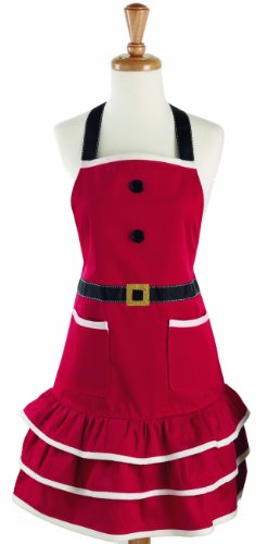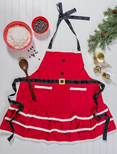 DII Cotton Chistmas Kitchen Apron with Pocket and Extra Long Ties, 29.5 x 24", Cute Women Ruffle Apron for Holidays, Hostee and Housewarming Gift-Mrs. Claus