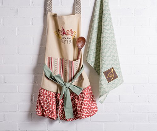 DII Cotton Thanksgiving Kitchen Apron with Pocket and Extra Long Ties, 28.5 x 26", Cute Women Ruffle Apron for Family day, Holidays, Christmas and Housewarming Gift-Get Together