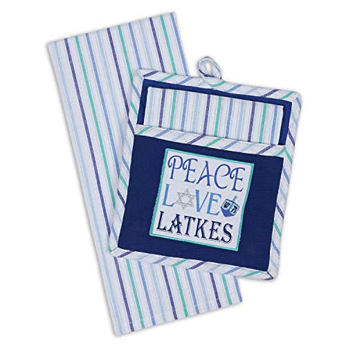 DII Cotton Hanukkah Chanukah Dish Towel and Pot Holder Gift Set, Perfect for Kitchen Cooking and Baking-Peace Love Latkes