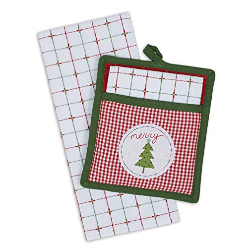 DII Cotton Christmas Holiday Dish Towel and Pot Holder Gift Set, Perfect for Kitchen Cooking and Baking-Merry Xmas Tree