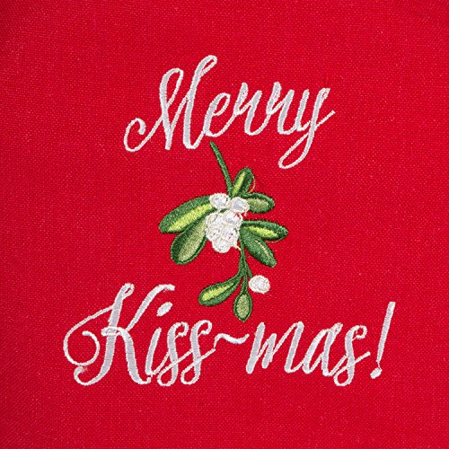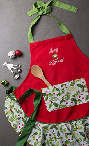 DII Cotton Chistmas Women Apron with Pocket and Extra Long Ties, 29.5 x 26", Cute Ruffle Kithen Apron for Holidays, Hostee and Housewarming Gift-Merry KissMass