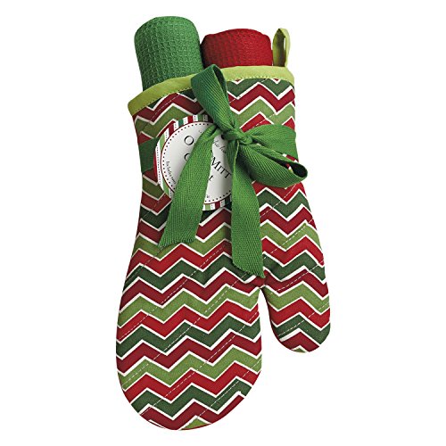 DII Cotton Christmas Holiday Oven Mitt and Dish Towels Gift Set, Perfect for Kitchen Cooking and Baking-Holiday Chevron