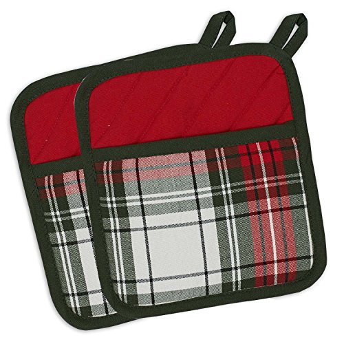 DII Cotton Christmas Holiday Pot Holders Kitchen Gift Set, 8x9", Set of 2-Christmas Plaid