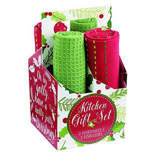 DII Cotton Christmas Holiday Dish Towels Gift Set, Perfect for Kitchen Cooking and Baking-Boughs of Holly