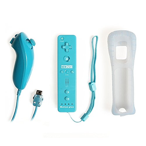Webat Built in Motion Plus Remote and Nunchuck Controller for Wii + Case-Blue