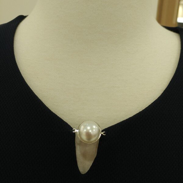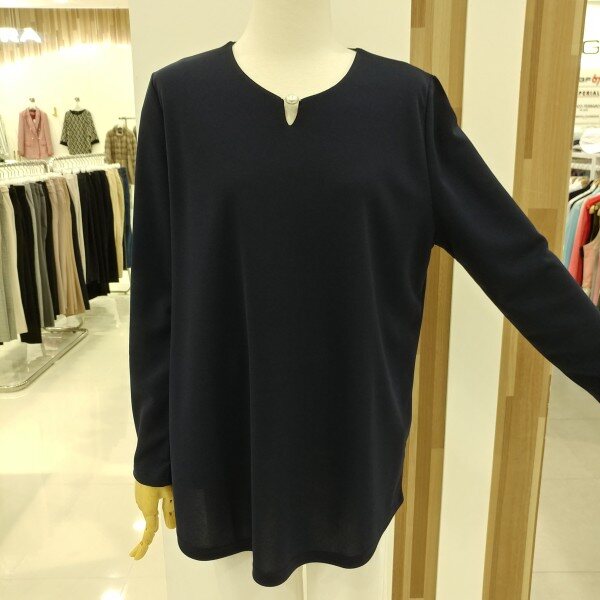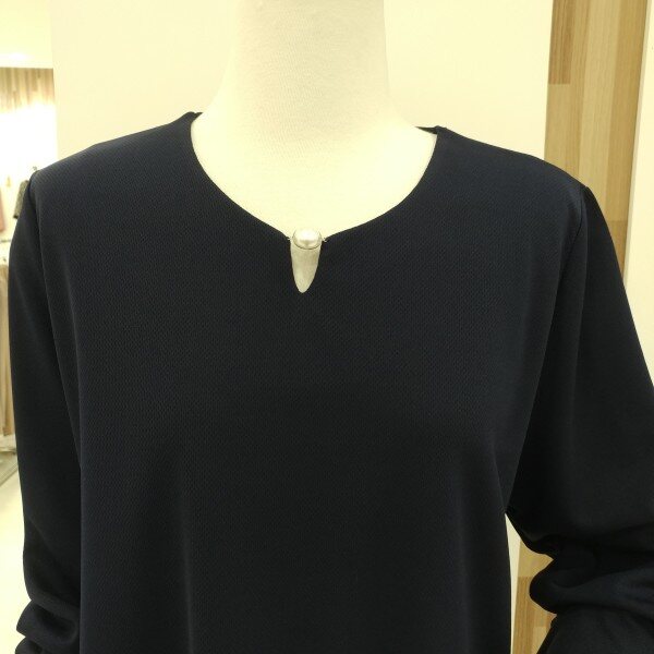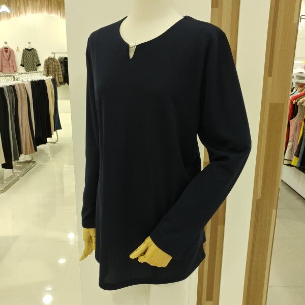 네크라인에 진주장식을 트리밍하여 포인트를 주었으며 다양한 아이템의 스타일링으로 높은 활용성을 기대할수있는 티셔츠입니다